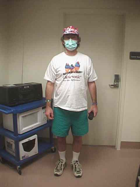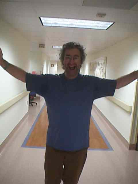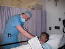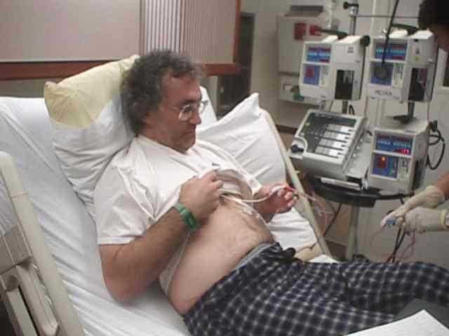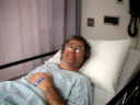 Dave is still happy from the pot luck as he lies down in PreOp.