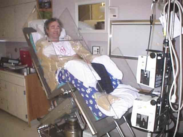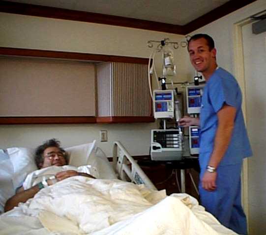 Post Op in the bone marrow transfer unit. Rodney, David's nurse,